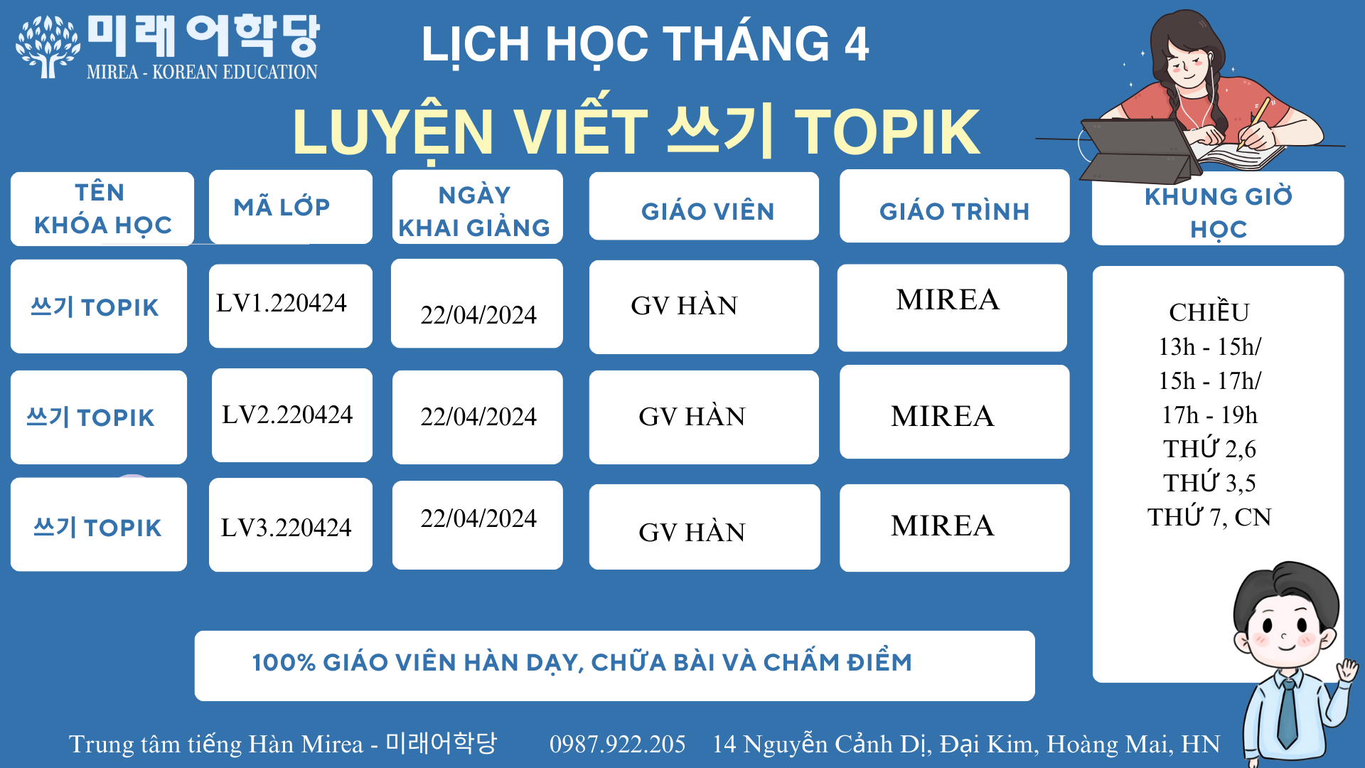 - Học rất kĩ và sát các dạng đề trong 쓰기 Topik.