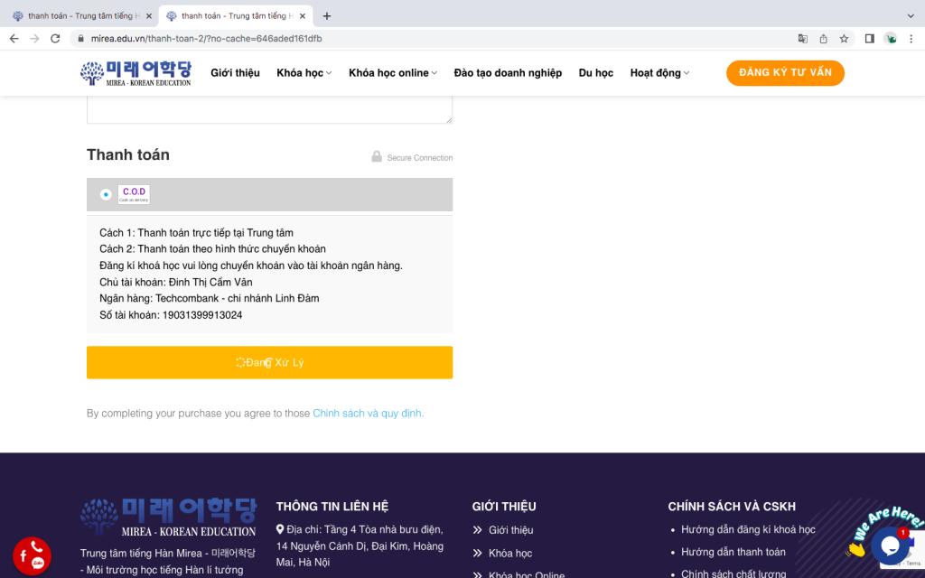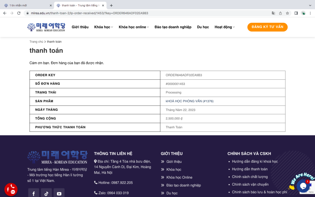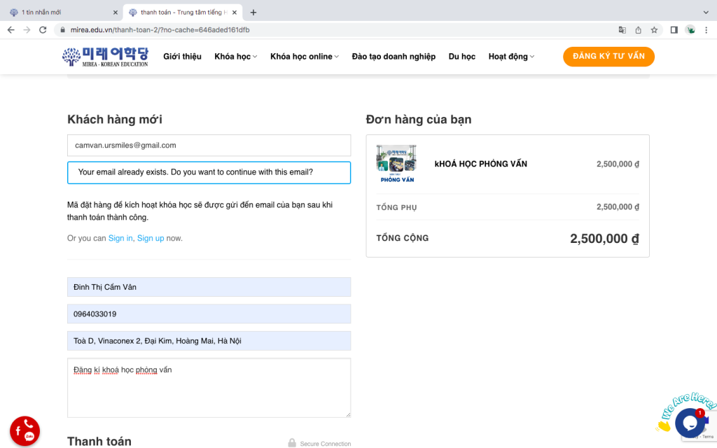 Bước 5: Hoàn tất đăng kí, nhân viên tư vấn sẽ liên hệ lại với học viên ngay sau khi nhận đăng kí.